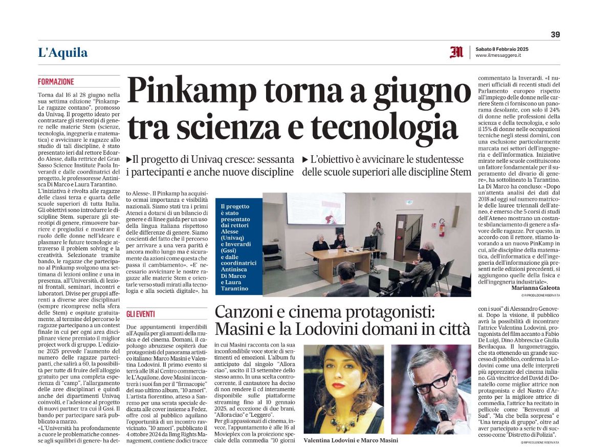 Il PinKamP è completamente gratuito, è promosso dal Comitato Unico di Garanzia (CUG) dell'Università degli Studi dell'Aquila e dal 2025 è ideato e realizzato dai Consigli di Area Didattica di Matematica, di Fisica, di Informatica, di Ingegneria dell'Informazione e di Ingegneria Industriale dei Dipartimenti di Ingegneria e Scienze dell'Informazione e Matematica, di Scienze Fisische e Chimiche e di Ingegneria Industriale e dell'Informazione e di Economia.